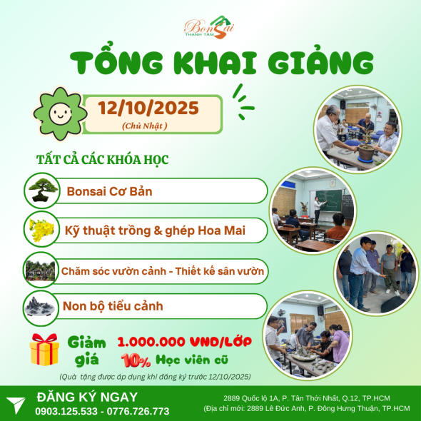 Trung tâm dạy nghề tư thục Nghệ thuật Bonsai Thanh Tâm ® chuyên đào tạo dạy nghề Sinh vật cảnh như Bonsai, Hoa Lan, Hoa Mai, Sân Vườn...v..v...